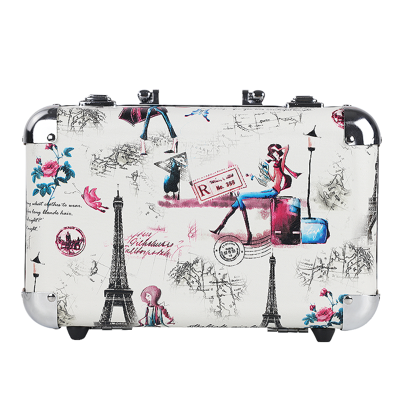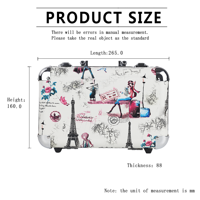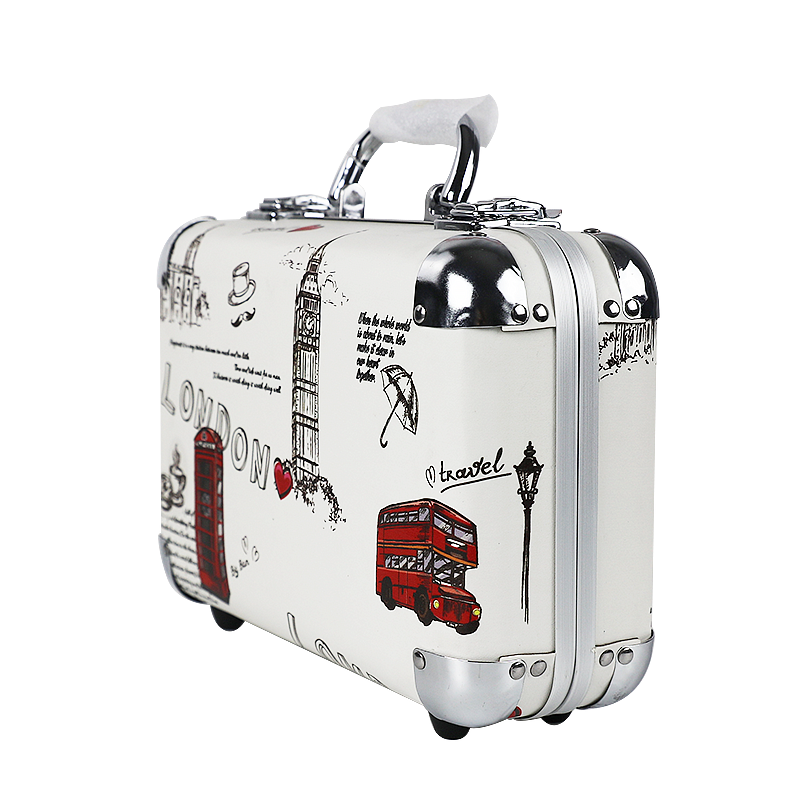Stable train case, beautiful and safe, metal and leather combination. Each corner is protected with metal pieces, and there are four solid plastic bases at the bottom to prevent moisture, dust and falling.