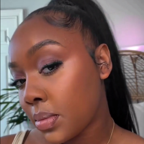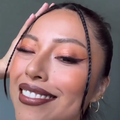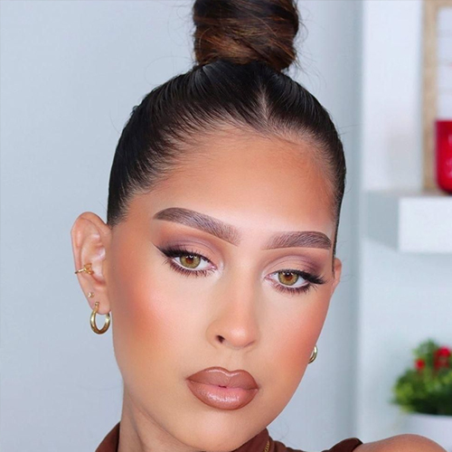 アイメイクの場合は、よりヌードな色合いのアイシャドウ パレット、どんな肌の色も美しく引き立てます。その上からまぶたの中央と下まぶたの生え際にシマーカラーを塗り、リキッドアイライナーとマスカラで仕上げます。