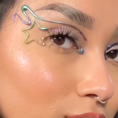 Funes recommends creating the design you want “in one pull” and using light hands to move it “anywhere you want the eyeliner to go”. A quick warning – hot glue can be difficult to work with, so it may take a while to master the art of 3D graphic lining.