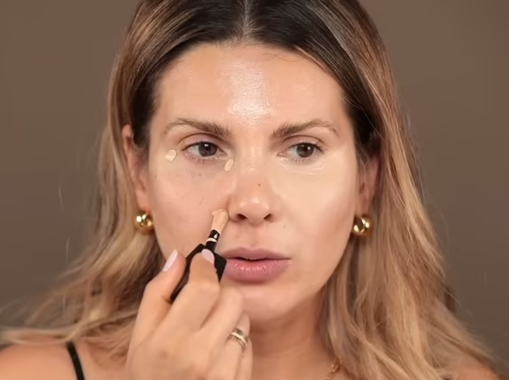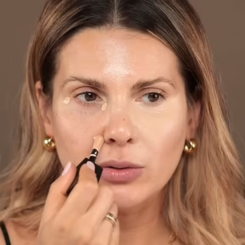 ‘If you apply too much concealer, it’s going to look really bad. We have a lot of movement around the eyes and it will crease, it will crack. It will look very dry. Nobody needs that much concealer in real life.’ Instead, Andreea suggested applying a ‘tiny, little bit’ to the ‘places you would like to bring more light,’ which included under her eyes and next to her nose.