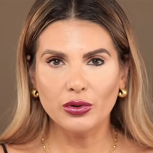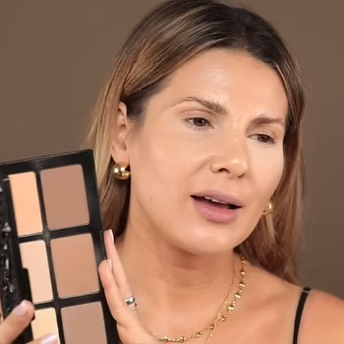 Andreea’s final piece of advice for not aging yourself with makeup is to make sure you’re not using a lipstick color that doesn’t work for you. While she pointed out that it’s ‘different for everyone,’ she herself said she always avoids ‘frosty’ and ‘metallic’ lip colors. ‘I don’t know who would look good with this,’ she joked as she tried on a sparkling nude color.