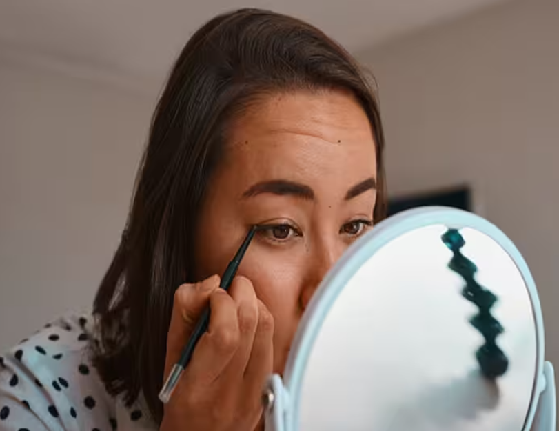 You can use eyeliner that floats on the crease line and meets at the outer corner of the eye while using an eyelash curler to get the perfect line.