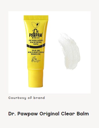 “We would dab that on your lips and make it really natural, or outline and color in the corners and blend them towards the middle of the lip to give it a slightly ombré effect,” she continues. “Then with the lip brush, add a little bit of Dr. Pawpaw.”