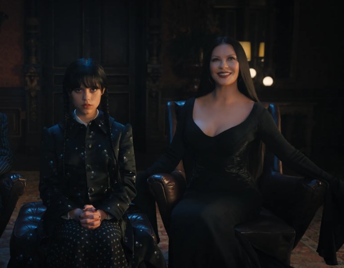 This isn’t your mother’s goth glam, however; it’s a more glamorous take on the ’90s-era trend. And that’s exactly what McDonald envisioned for the series’ aesthetic. “In keeping with The Addams Family, Wednesday was always going to be goth, but it was also very important for it not to be too gothic—it was more like a glossy goth,” she says. “I would always describe Morticia as a ‘glossy goth,’ and Wednesday as more of a ‘soft goth.’”