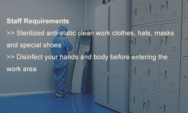 >> Sterilized anti-static clean work clothes, hats, masks and special shoes